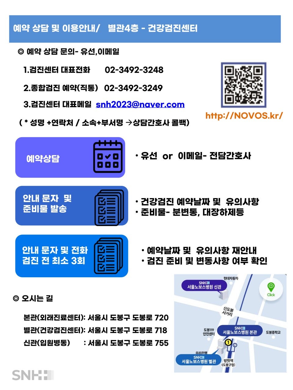 2026년 노보스병원 건강검진 예약방법 및 검진항목표