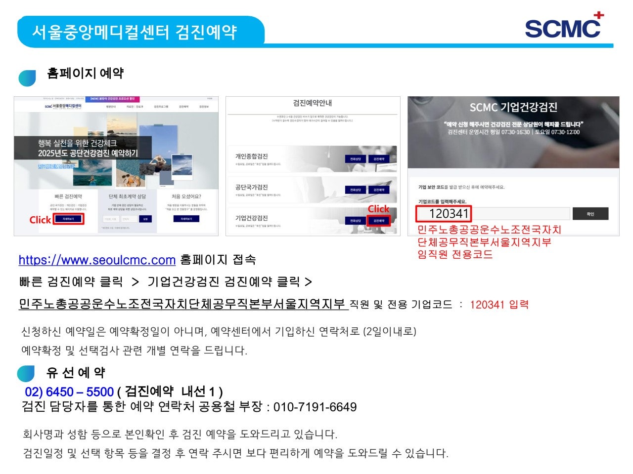 2026년 서울중앙메디컬 건강검진 예약방법 및 검진항목표
