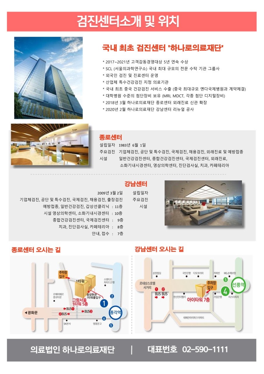 2025년 하나로의료재단 건강검진 예약방법 및 검진항목표
