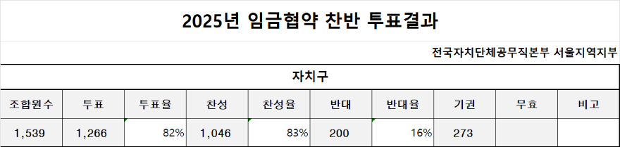 2025년 자치구 공무직 임금협약 찬반투표 결과 공지