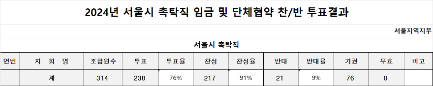 2024년 서울시 촉탁직 임.단체협약 찬반투표결과공지